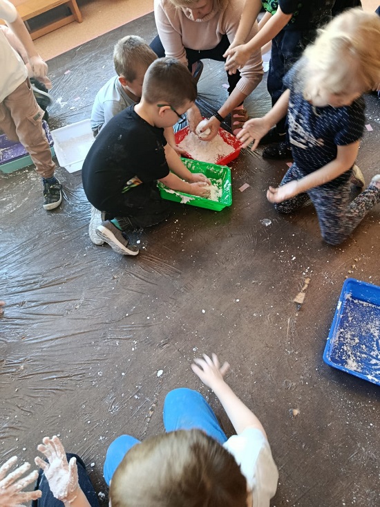 Zabawy sensoryczne- sztuczny śnieg